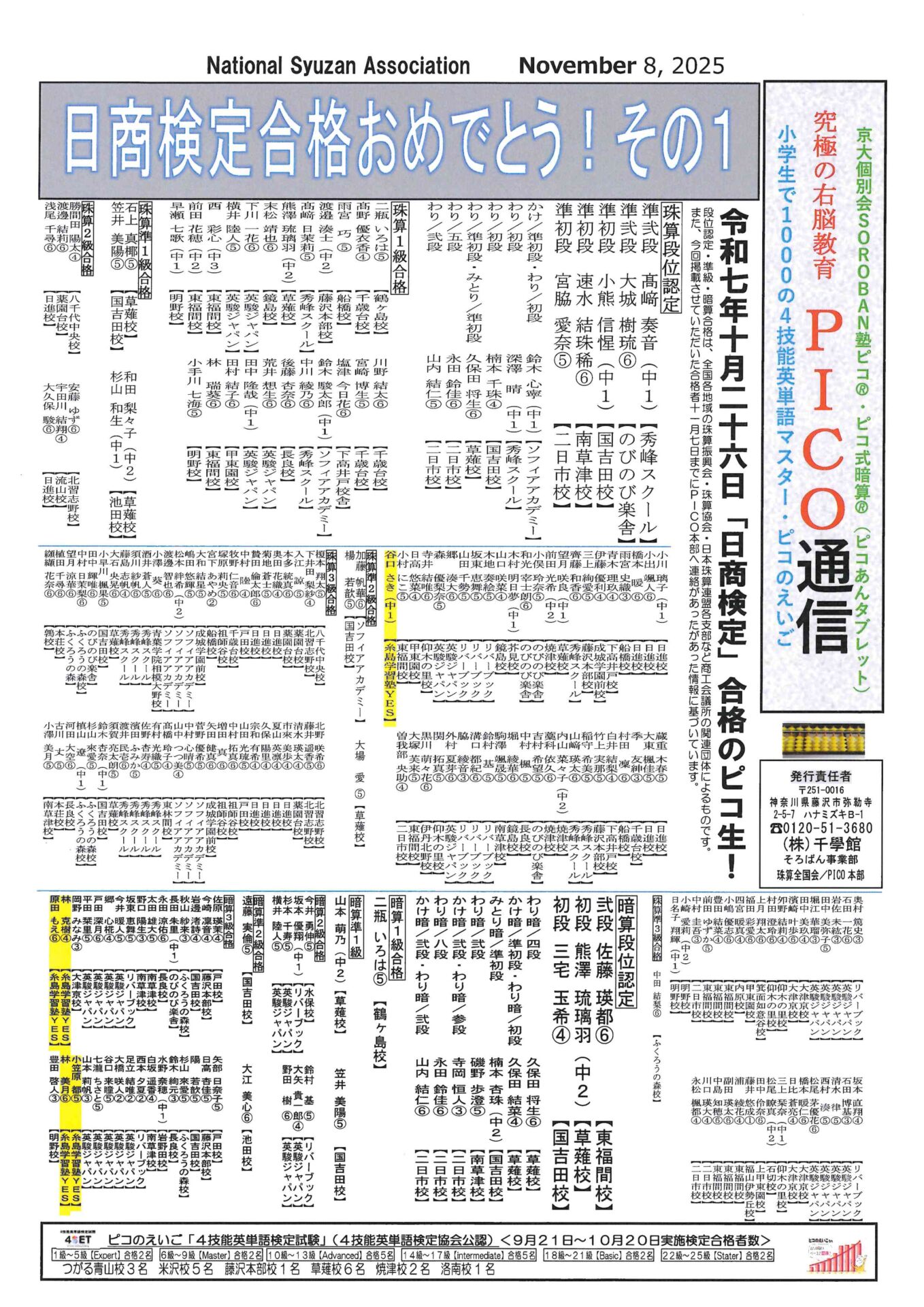 令和七年十月二十六日「日商検定」合格のピコ生!